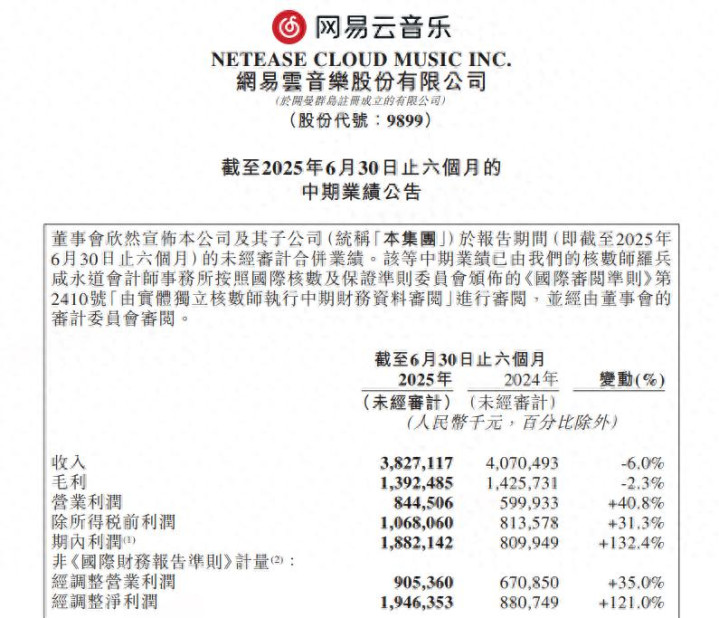 8月14日,网易云音乐(HK:9899)发布2025年上半年业绩公告。数据显示,网易云音乐2025年上半年实现净收入38.3亿元,营业利润8.4亿元。平台继续聚焦核心在线音乐业务,并通过产品创新和为社区注入活力,持续提升用户的优质音乐体验。2025年上半年,网易云音乐推出小灯泡、Deepseek锐评红心歌单、神光模式播放器等全新产品功能,持续优化用户体验,用户活跃度、App端听歌时长均有增加。